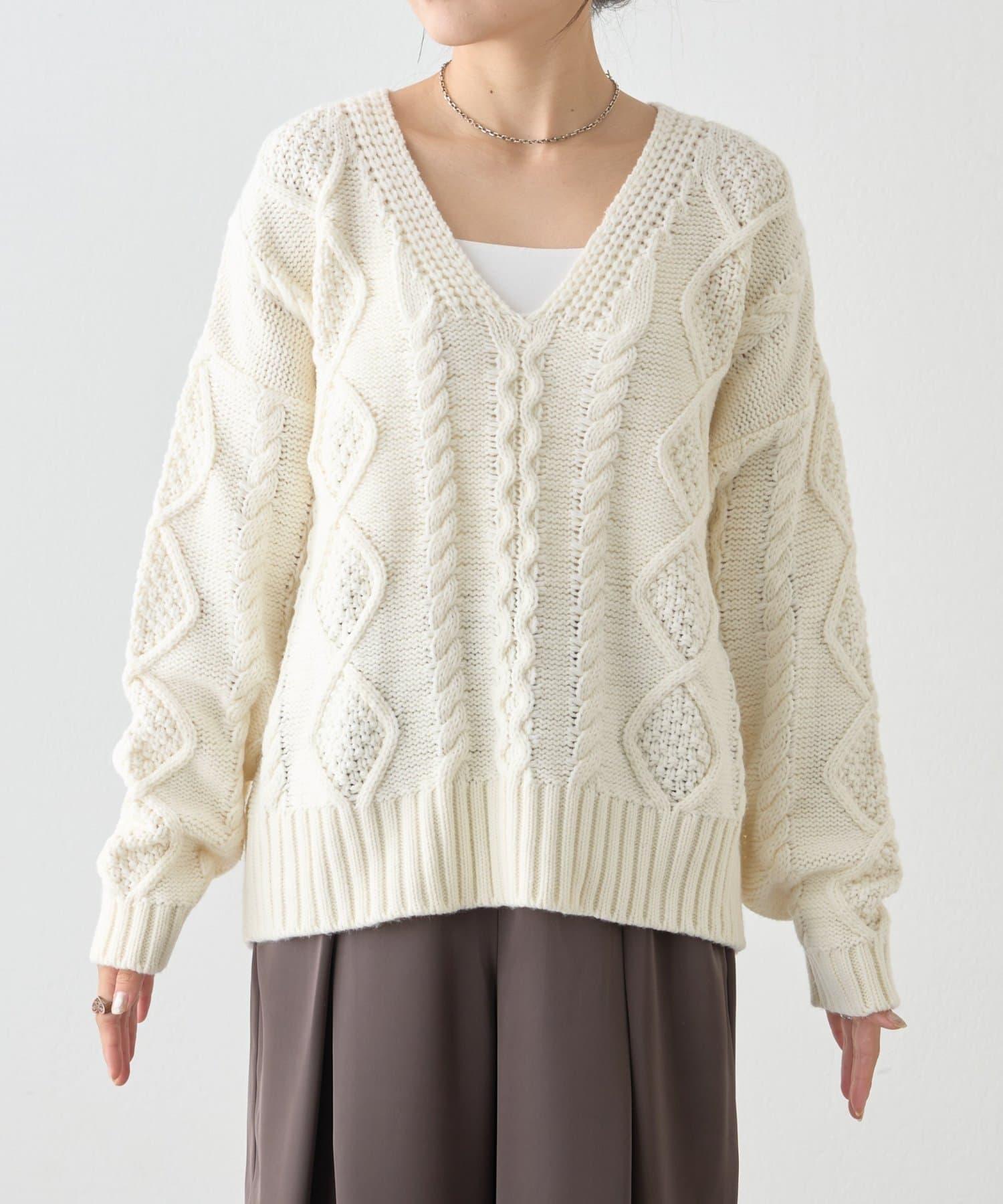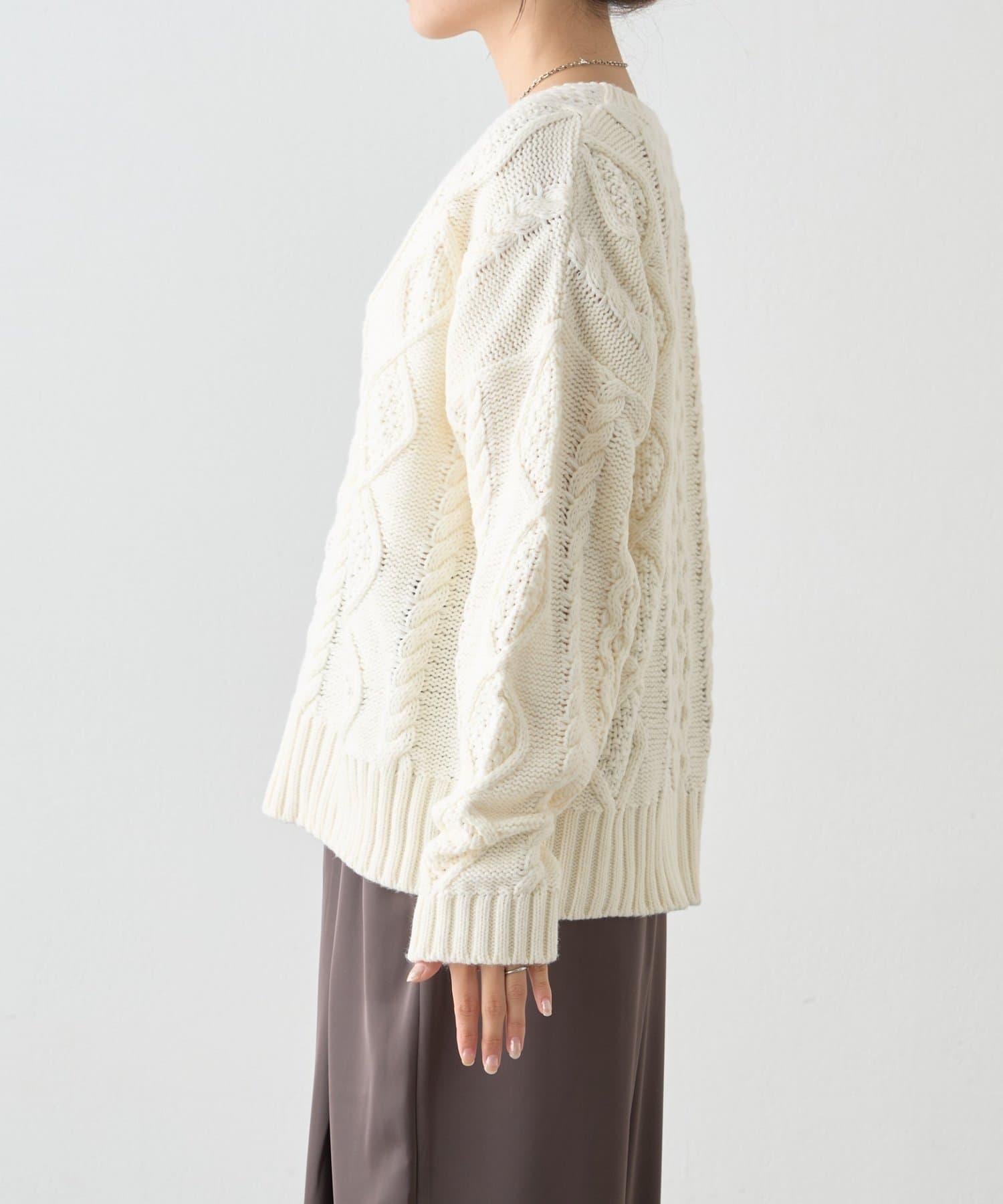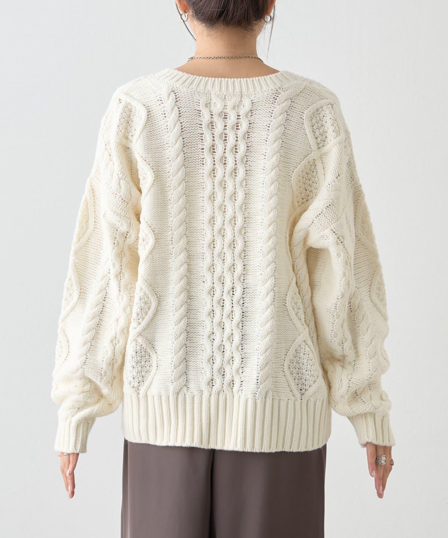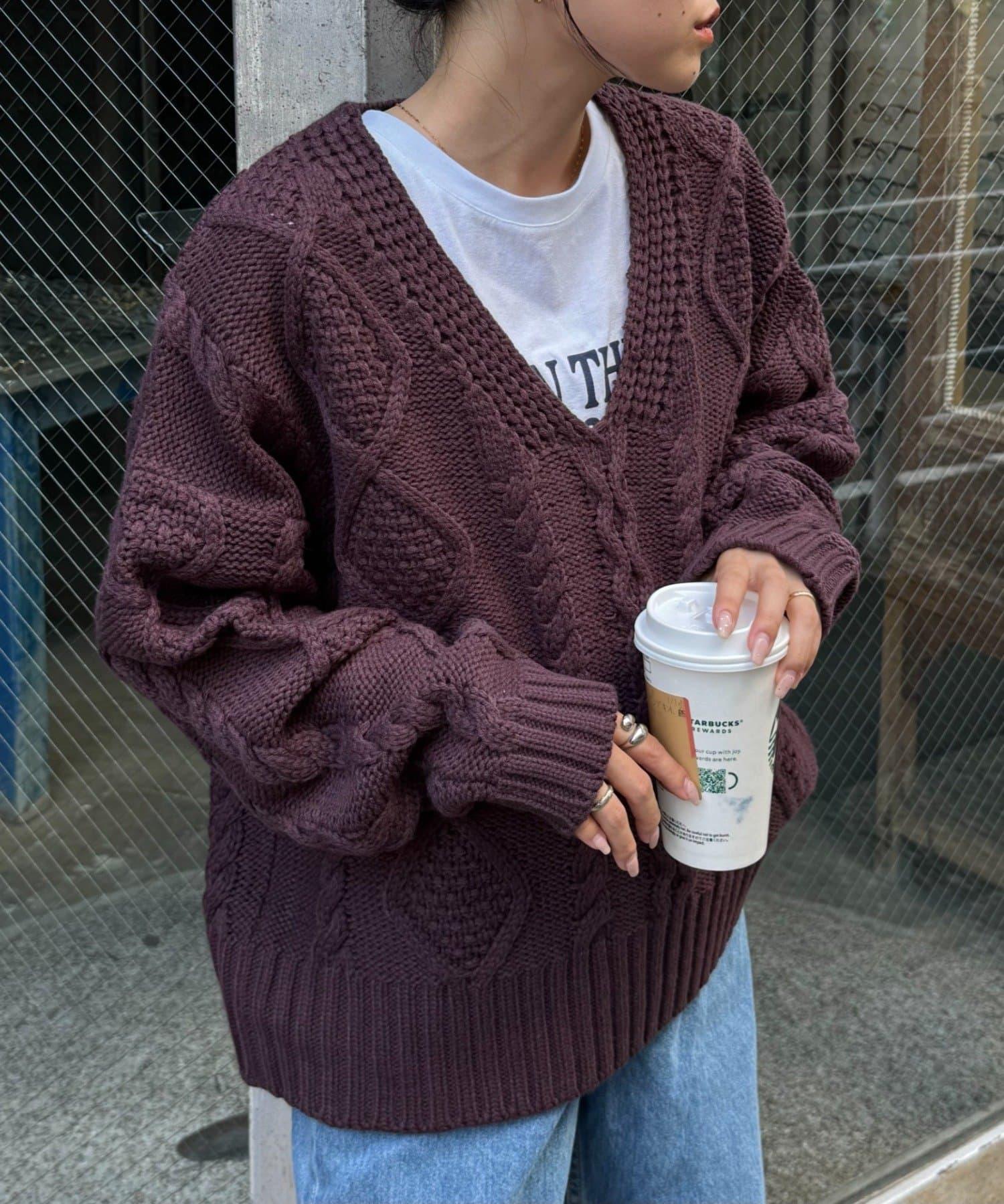 寬鬆的針織衫,搭配可愛的電纜針織。