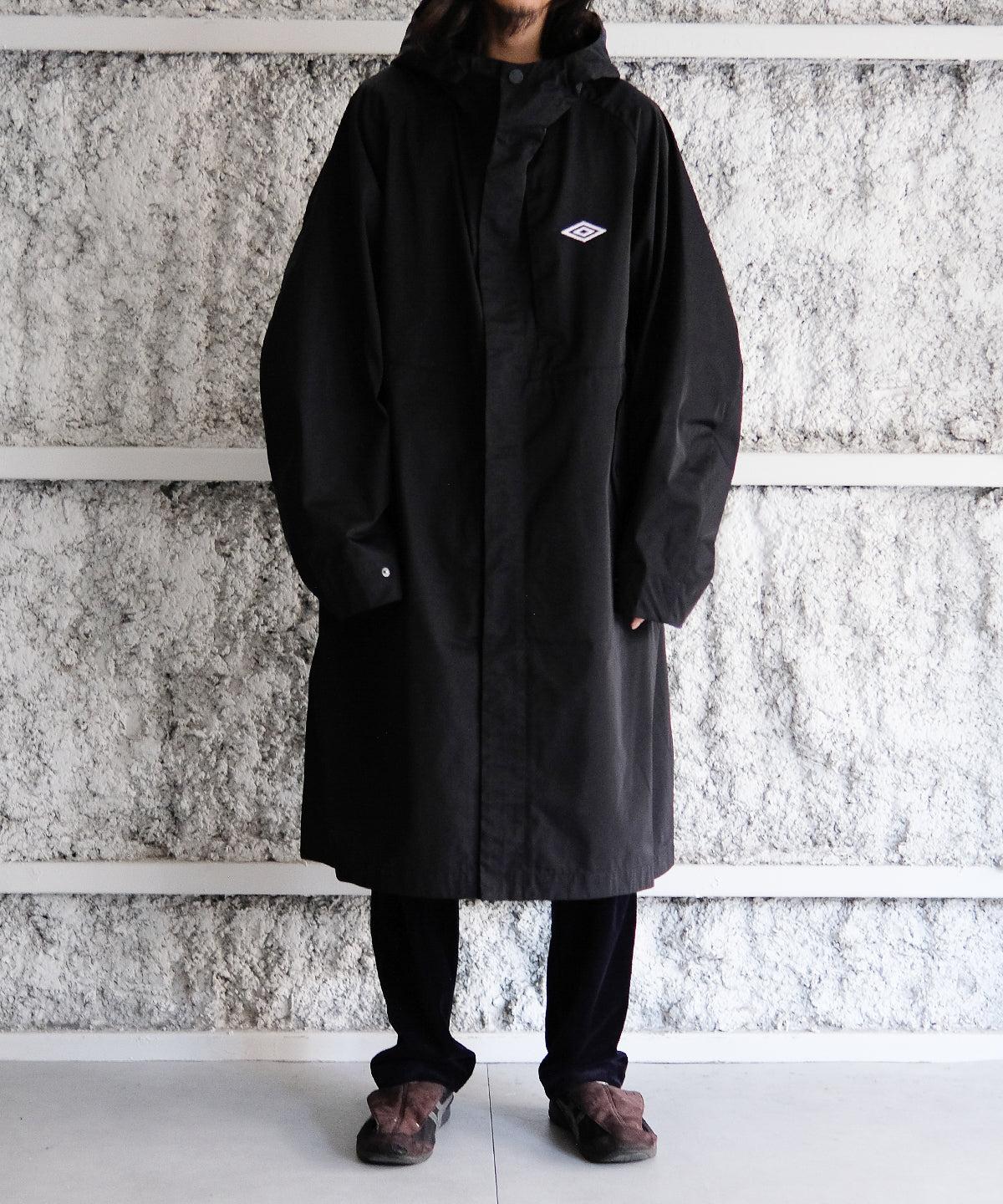 &lt;產品描述>BLK White Mountaineering®︎ 和 UMBRO 的合作產品。A 字型寬鬆連帽外套它採用品牌獨特的曲線線條圖案工藝製作而成,由記憶塔夫綢製成,具有適度的回彈性和美麗的光澤。防水、輕便,為日常使用增添了貼心的規格。