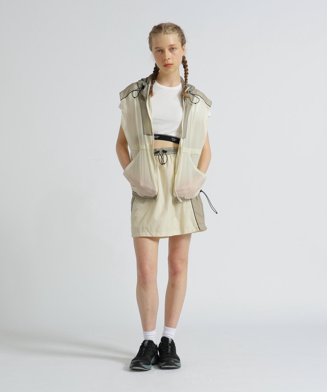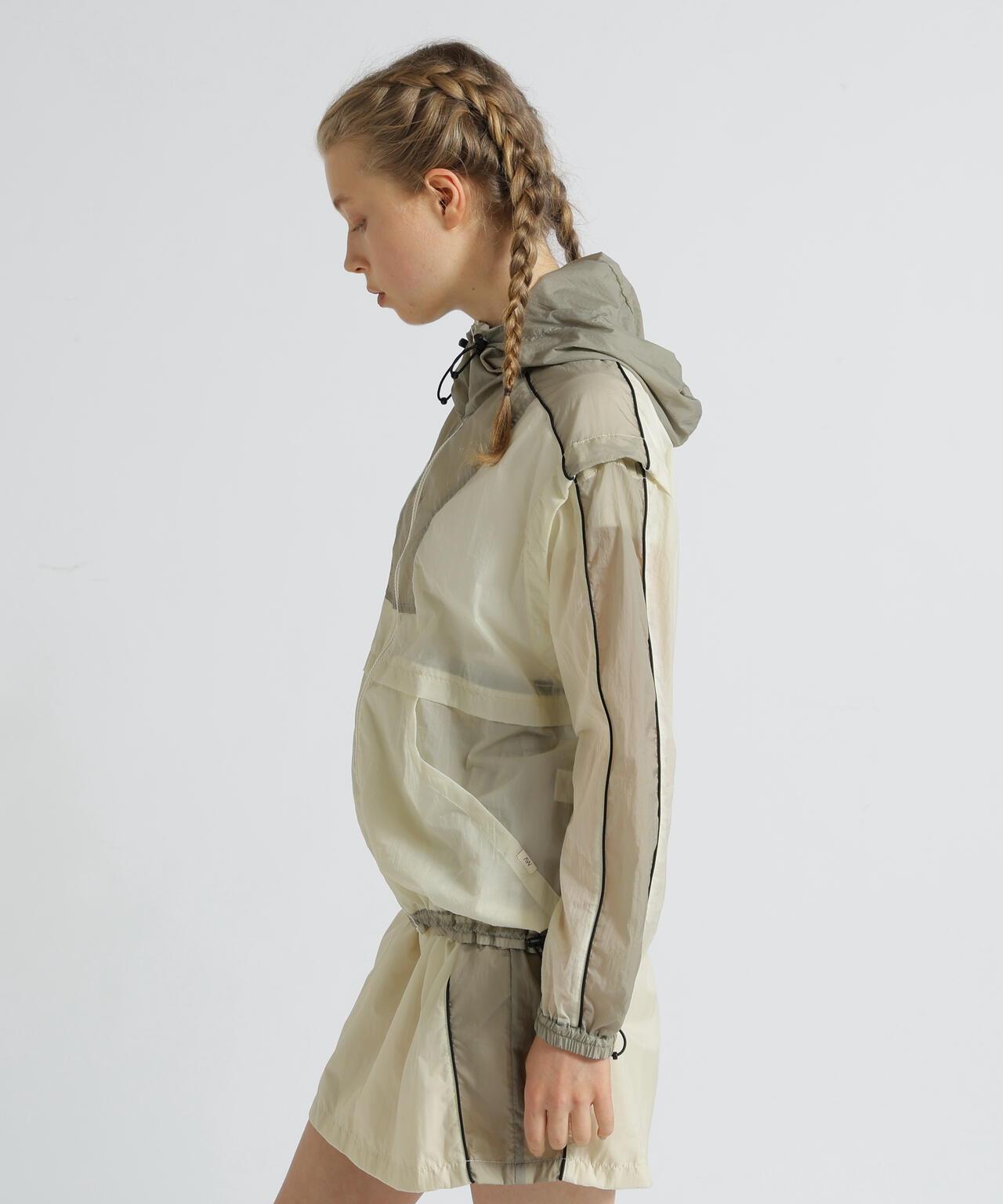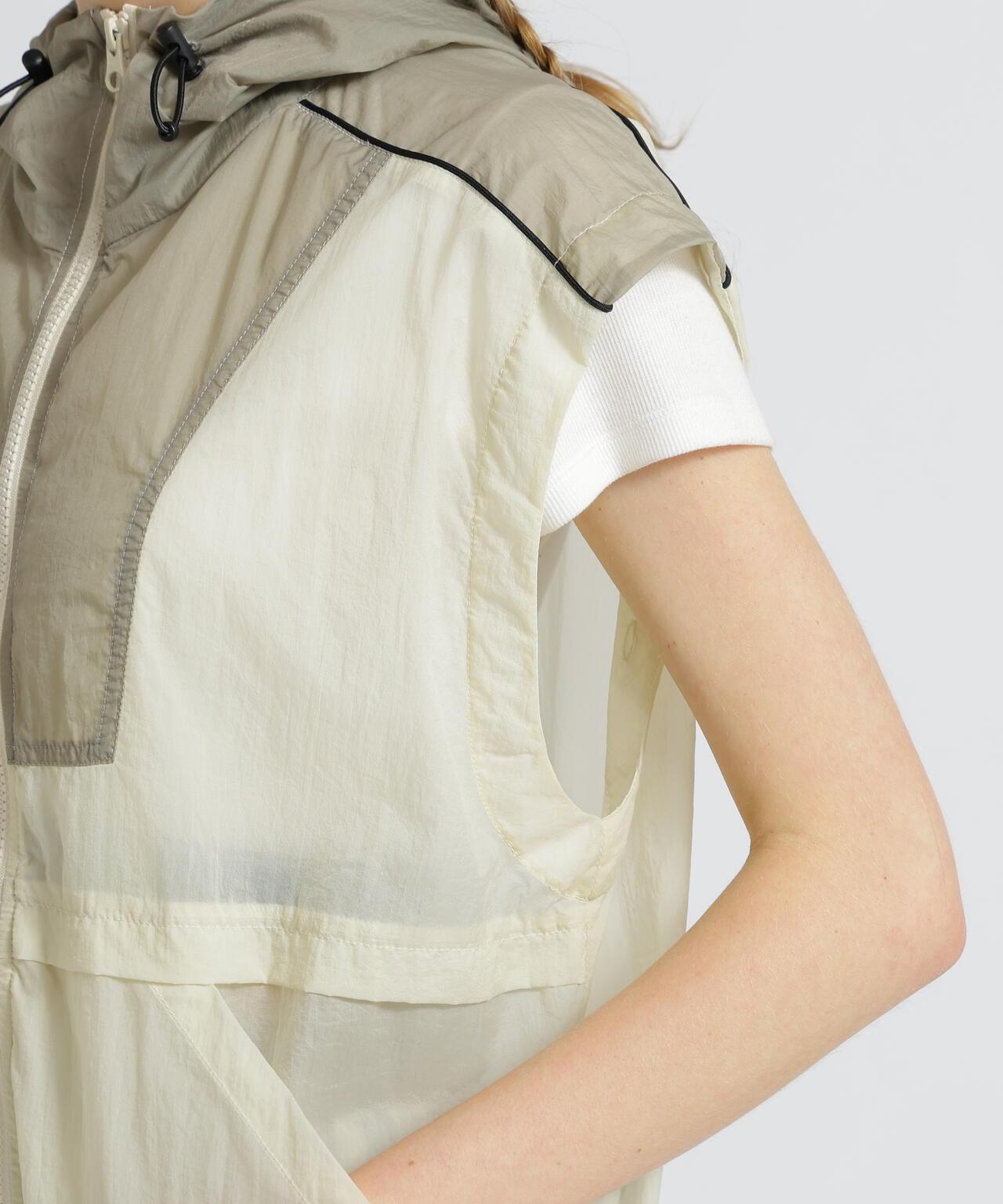 透明尼龍材料製成的透視外衣,袖子可拆卸,因此也可作為馬甲穿著。從夏季到初秋,該產品可長期穿著。AVIREX WOMAN] 該系列將純正軍裝的功能性和設計感投射到女式休閒裝上。作為一個獨特而永恆的女裝品牌,它為聰明、自由、好奇、端莊、活潑的成年職業女性提供女式休閒裝。
