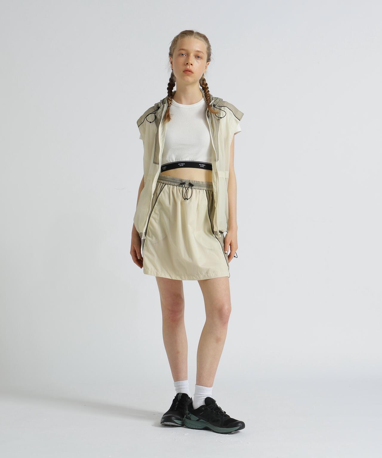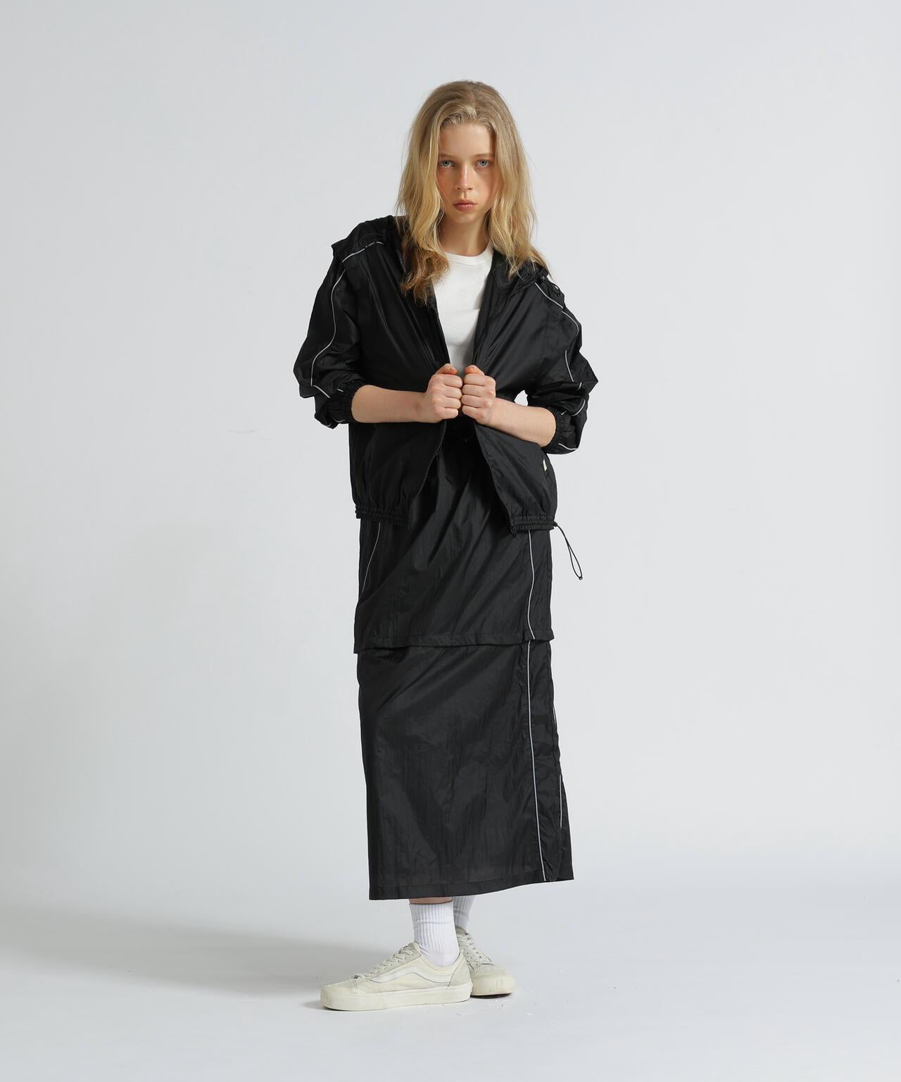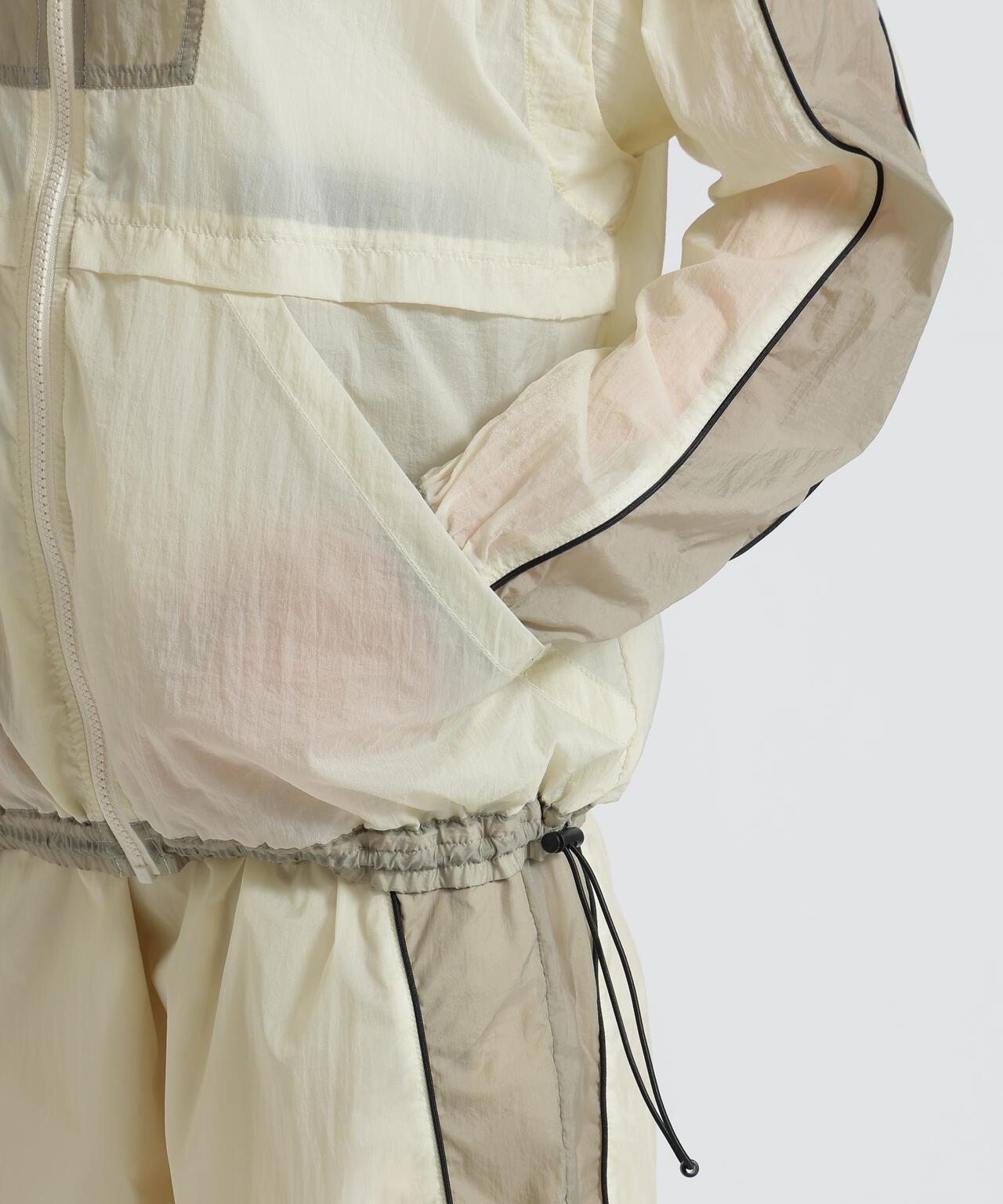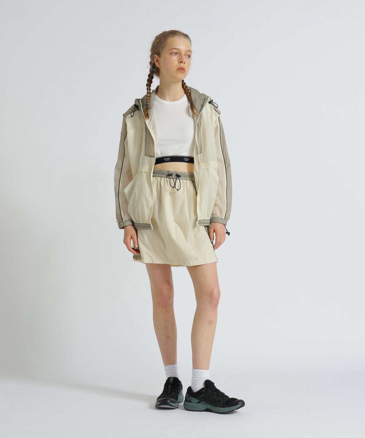 透明尼龍材料製成的透視外衣,袖子可拆卸,因此也可作為馬甲穿著。從夏季到初秋,該產品可長期穿著。AVIREX WOMAN] 該系列將純正軍裝的功能性和設計感投射到女式休閒裝上。作為一個獨特而永恆的女裝品牌,它為聰明、自由、好奇、端莊、活潑的成年職業女性提供女式休閒裝。