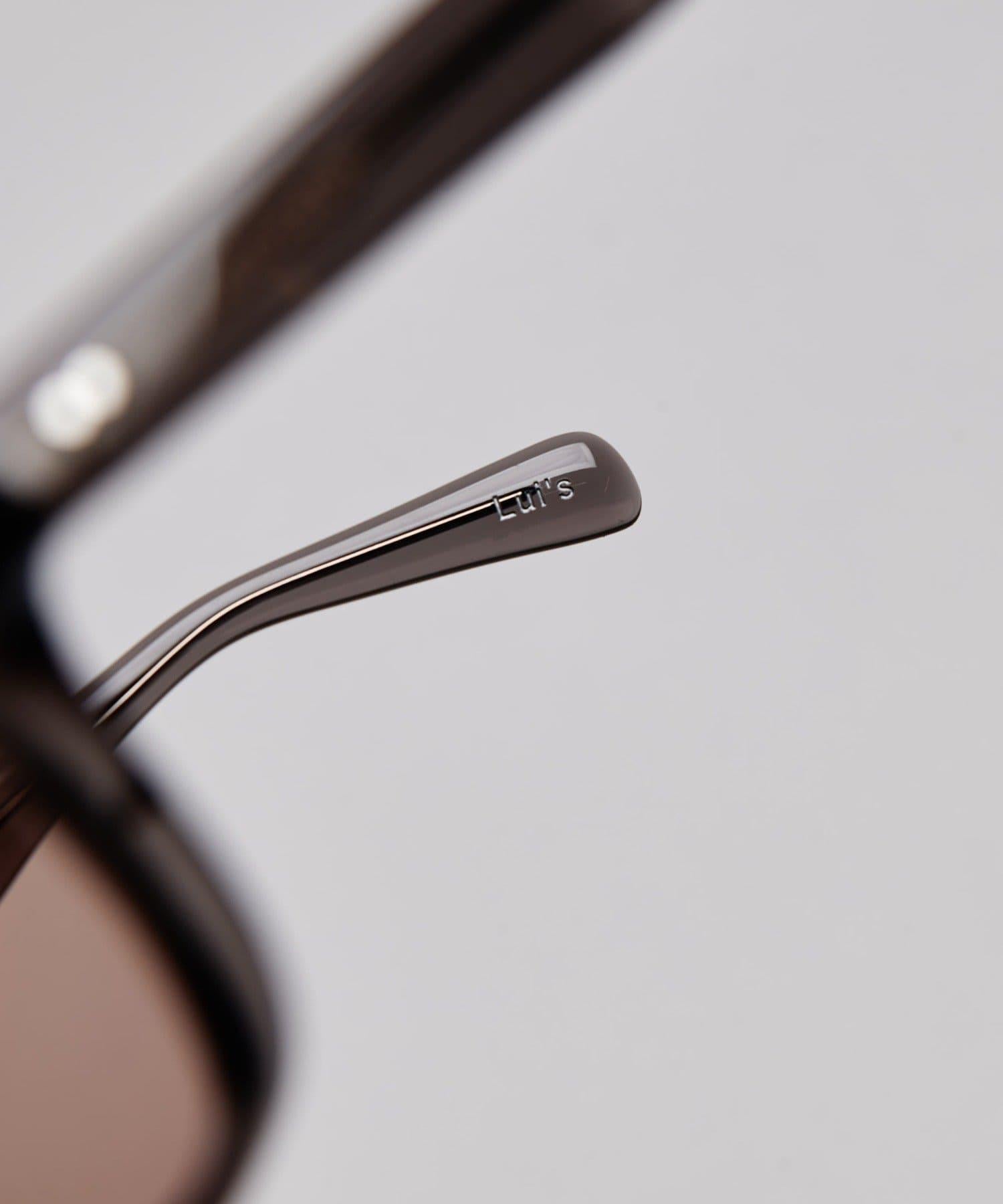 Lui 的新太陽鏡系列。Worker / 波士頓形狀設計圓潤,波士頓形狀為倒三角形,儘可能接近圓形。其特點還在於寬大的上下邊緣,給人一種柔和的感覺。鏡架的鼻樑採用醋酸纖維,鼻墊透明,這款太陽鏡造型簡潔,適合各種人群佩戴。