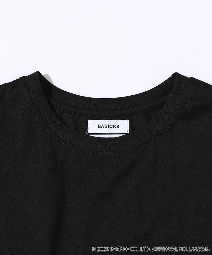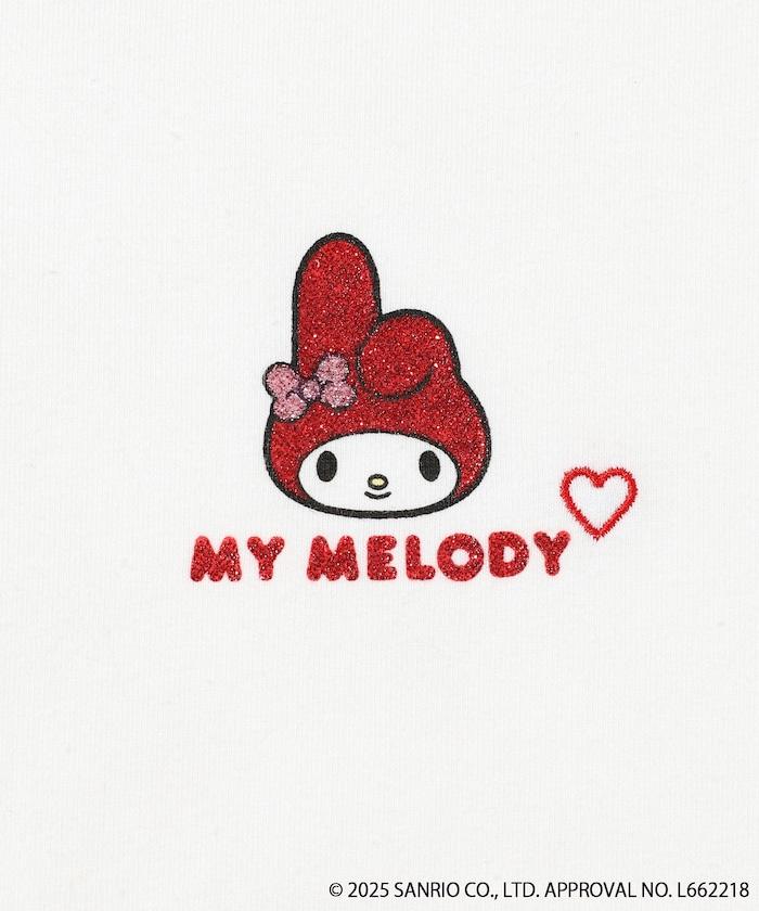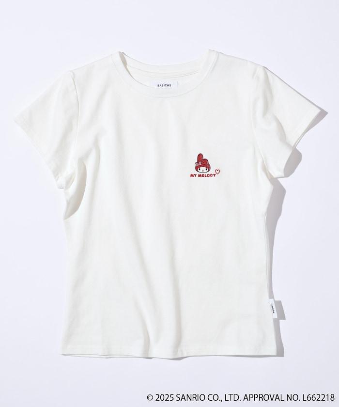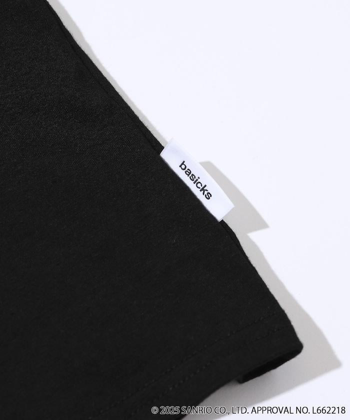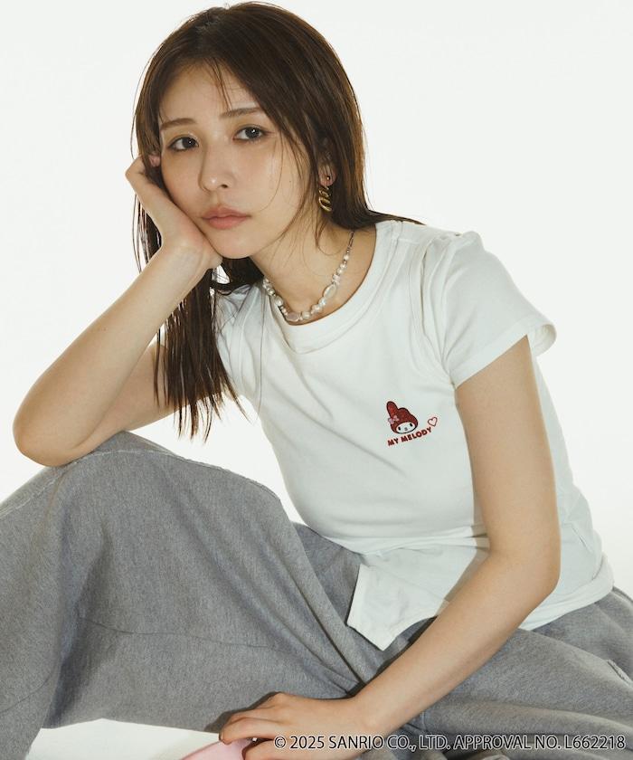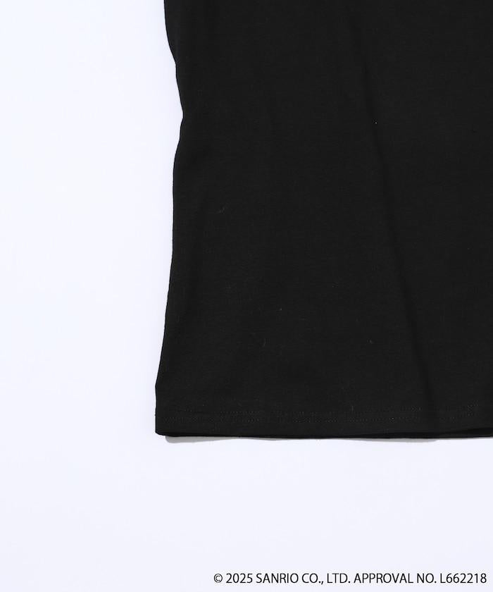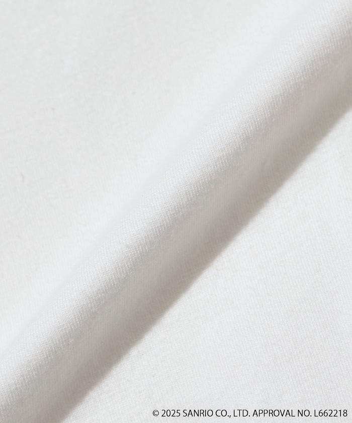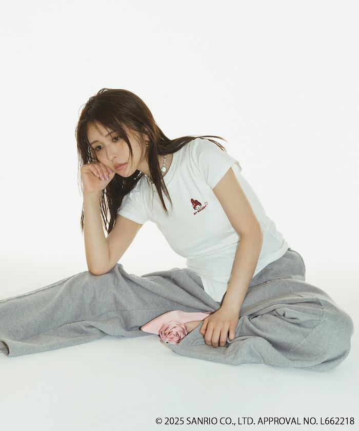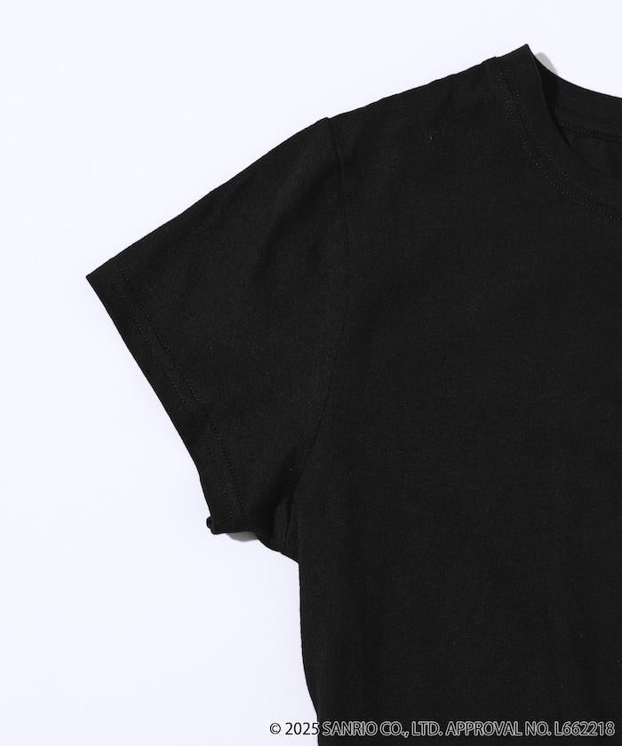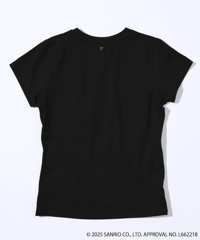 小巧的 T 恤上印有 My Melody 和 Kuromi 的蹩腳印花。