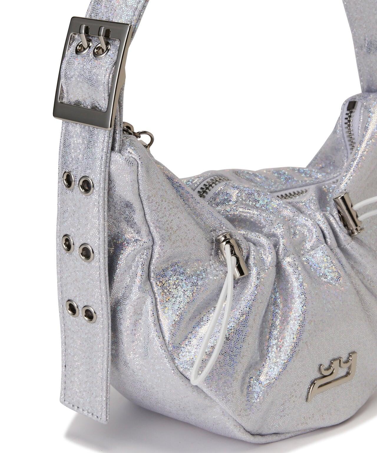 YIE YIE 手袋 "SASHA BAG "在日常使用中非常方便,其獨特的輪廓和華麗、女性化的閃粉使其成為極具吸引力的搭配單品。局部採用彩虹色,讓人眼前一亮。它的大小非常適合旅行,可以安全地存放智能手機、錢包和迷你小包等必需品。前部的抽繩設計可以讓你變換身形,盡享樂趣。YIE YIE韓國品牌 YIE YIE 由創意總監 Sunyuul Yie 創立。
