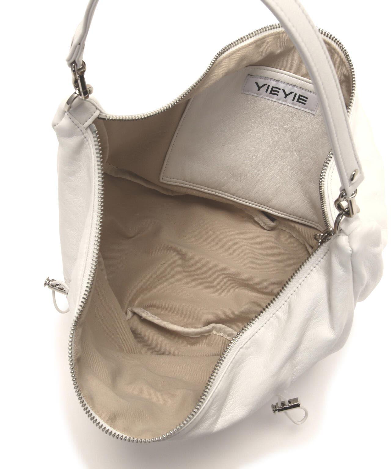 YIE YIE 日常實用手袋 "SOPHIA BAG" 柔軟材質的獨特輪廓是一款極具吸引力的單品。大小適合外出,有足夠的空間放置智能手機、錢包、迷你小包和其他必需品。前部的抽繩可以讓你改變廓形,盡享樂趣。YIE YIE - 韓國品牌 YIE YIE 由創意總監 Sunyuul Yie 於 2015 年創立,是 YUUL YIE 的姊妹品牌。YIE YIE 由創意總監 Sunyuul Yie 於 2015 年推出。主品牌 YUUL YIE 的藝術家