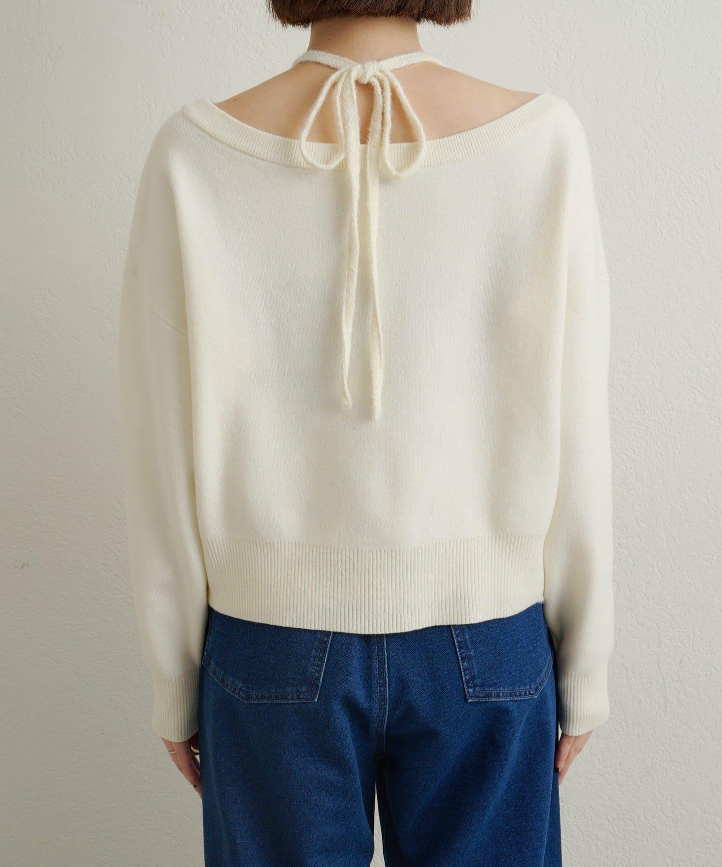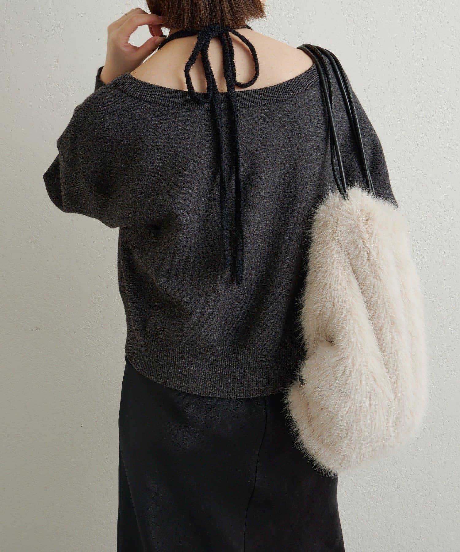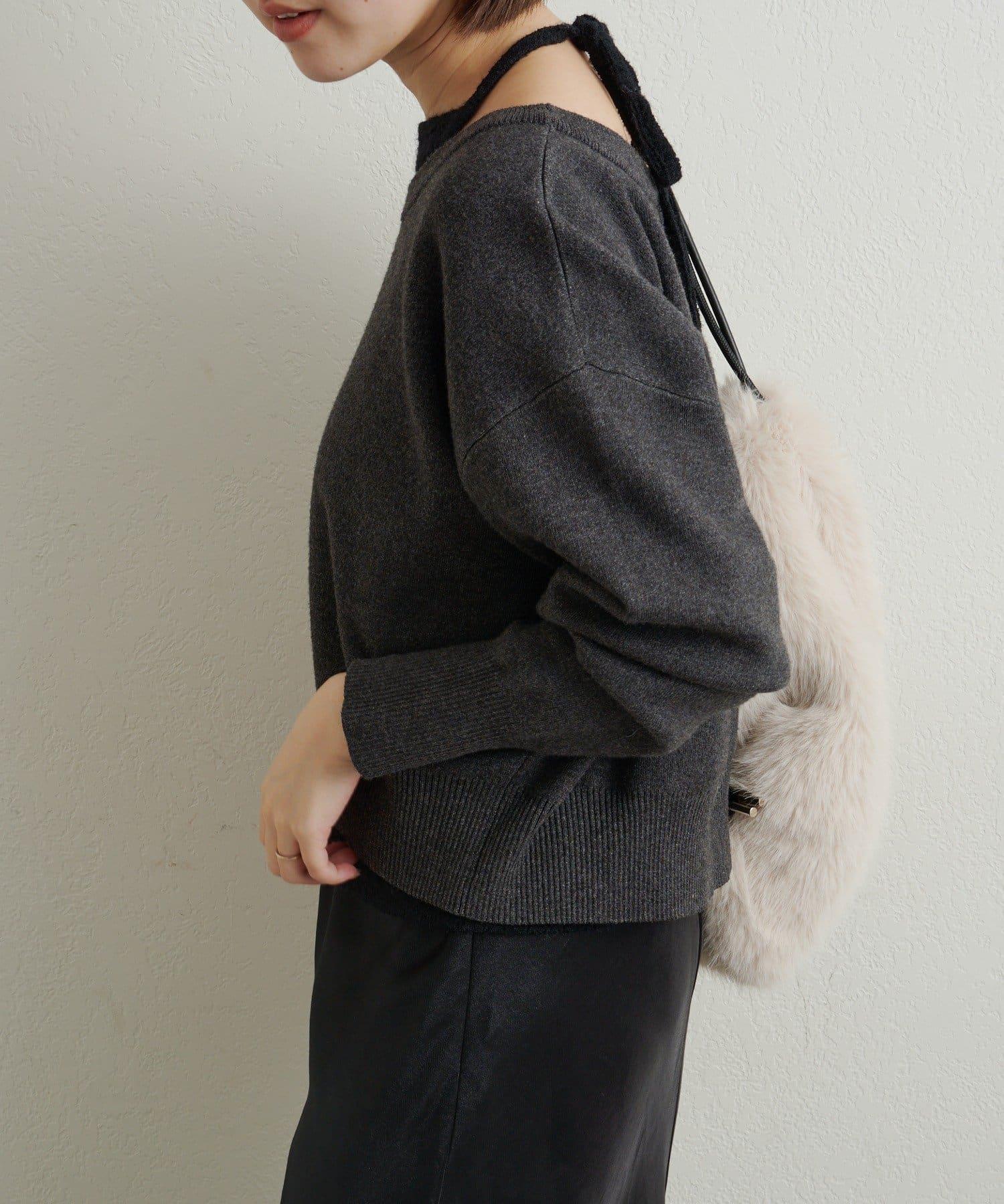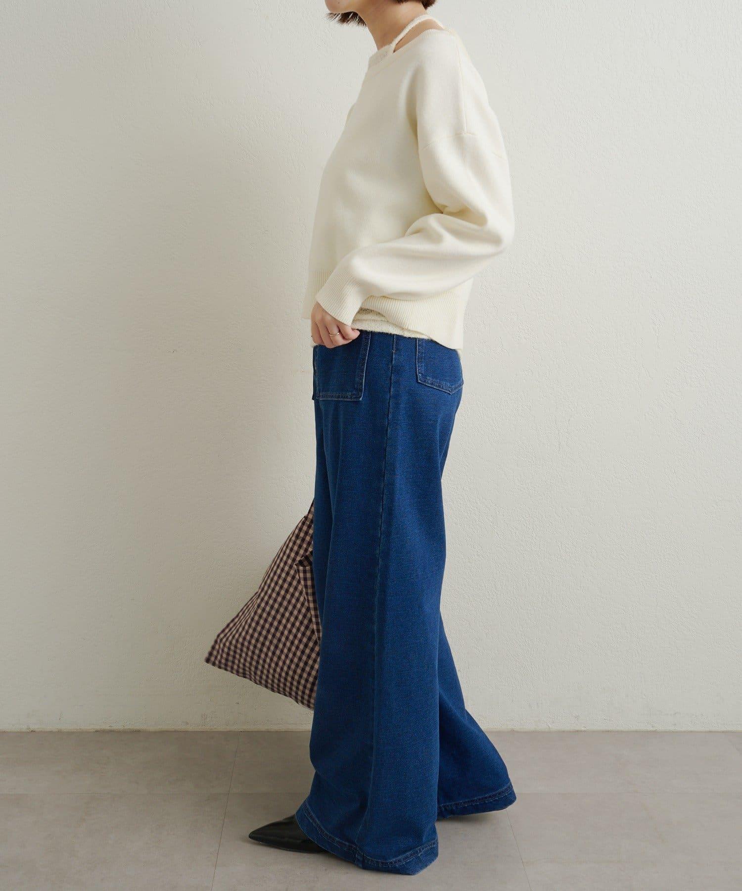 這款半身裙的頸部開口較寬,因此也可作為單肩套裝穿著。