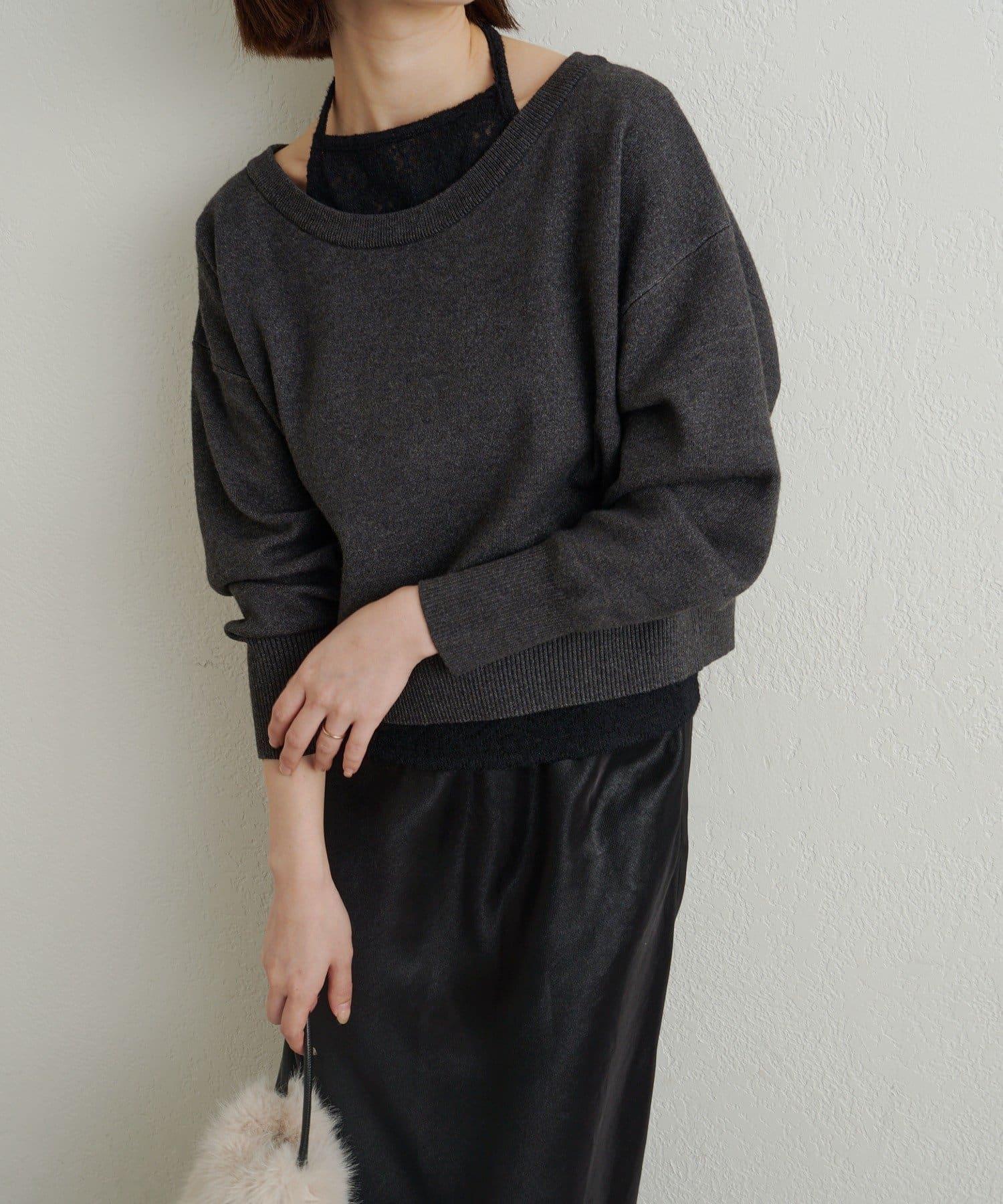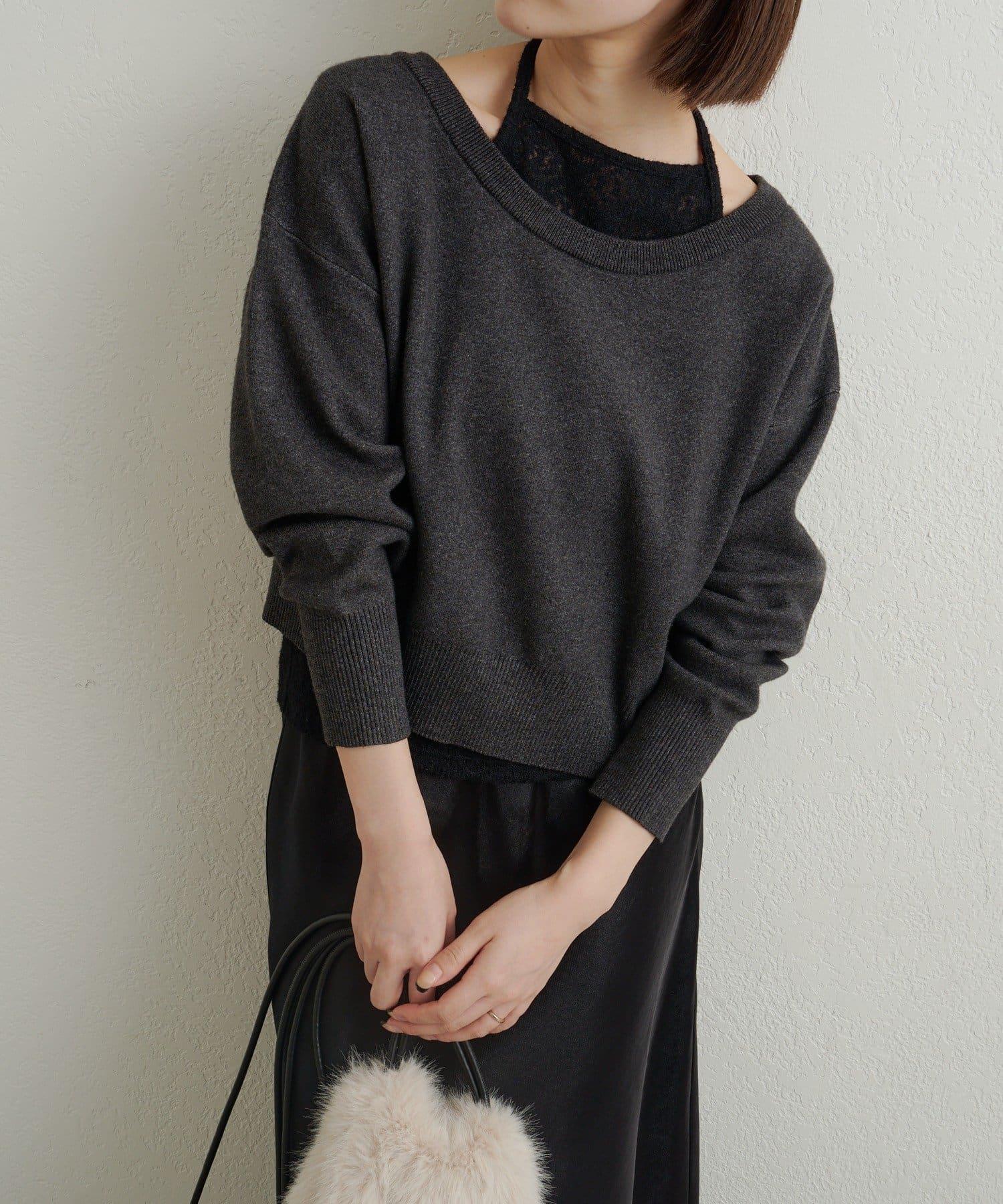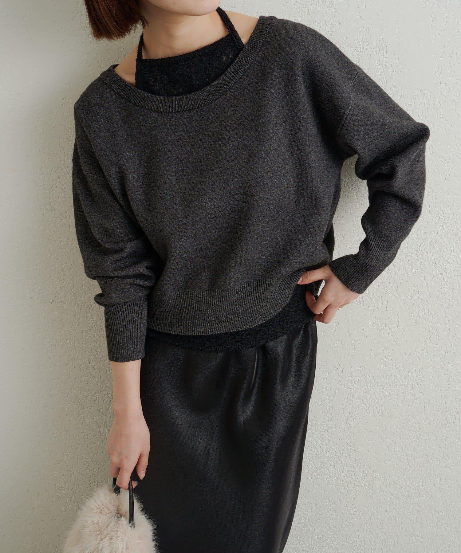【yuina企畫】蕾絲束身上衣×針織套裝