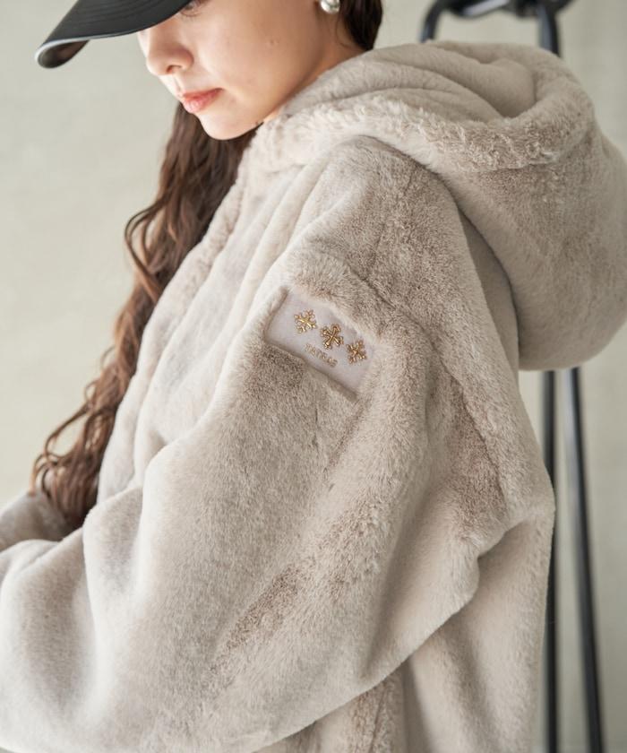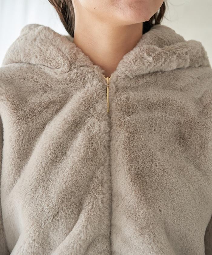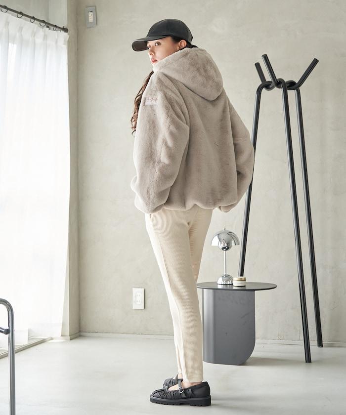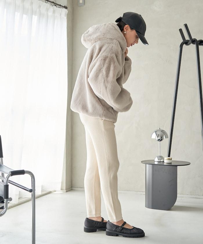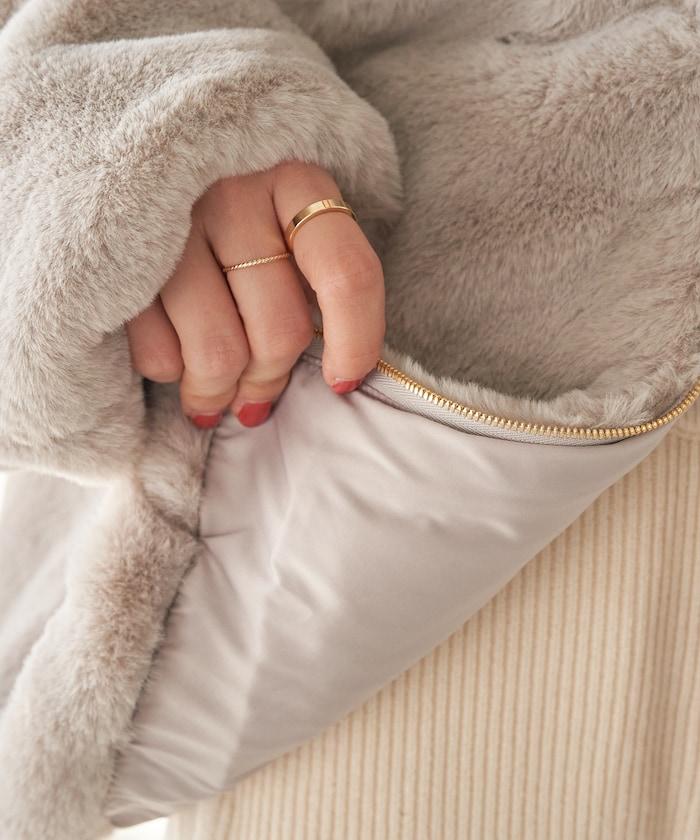 這種類似兔毛的面料由回收的聚酯紗線製成,色澤亮麗,觸感細膩。