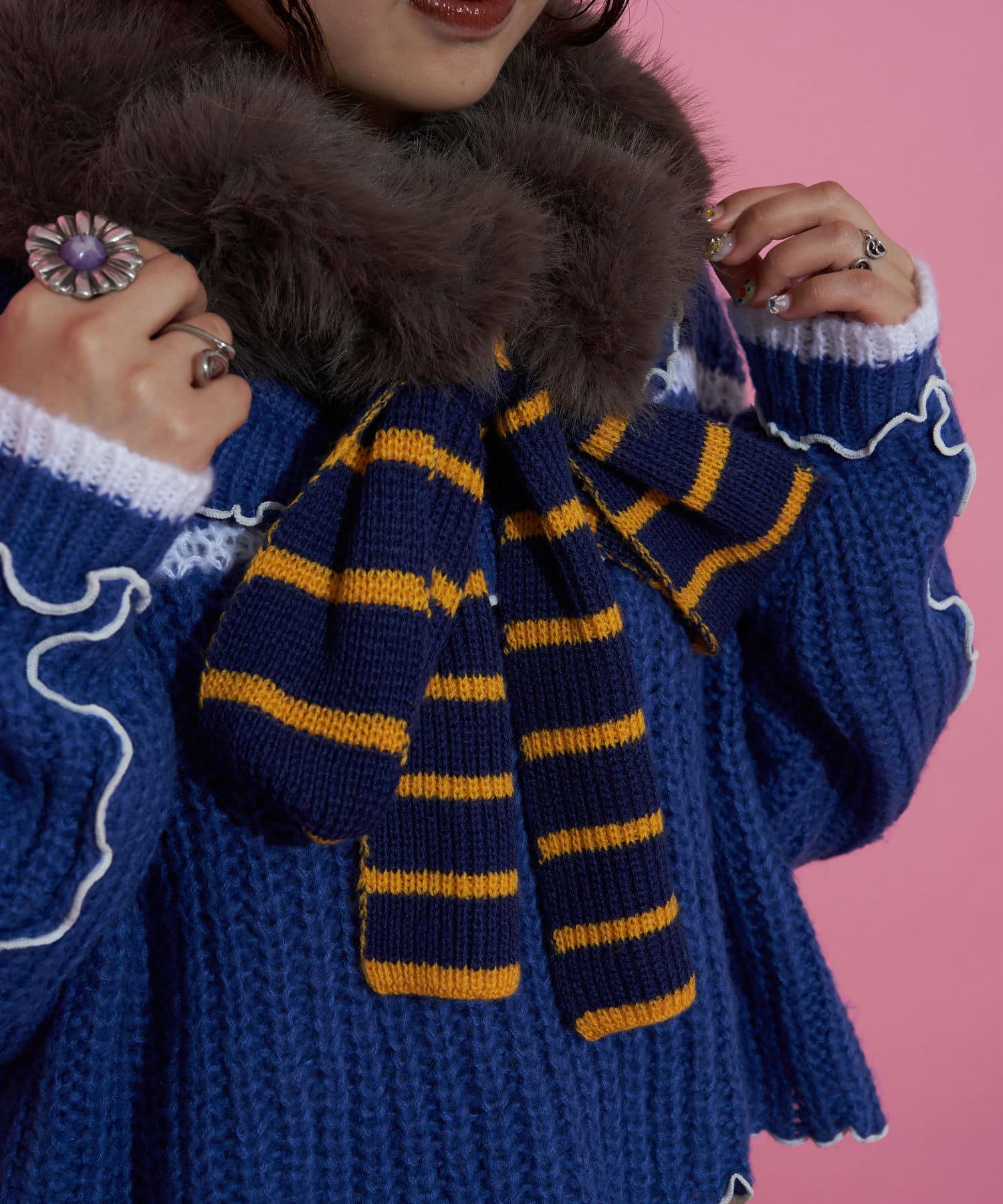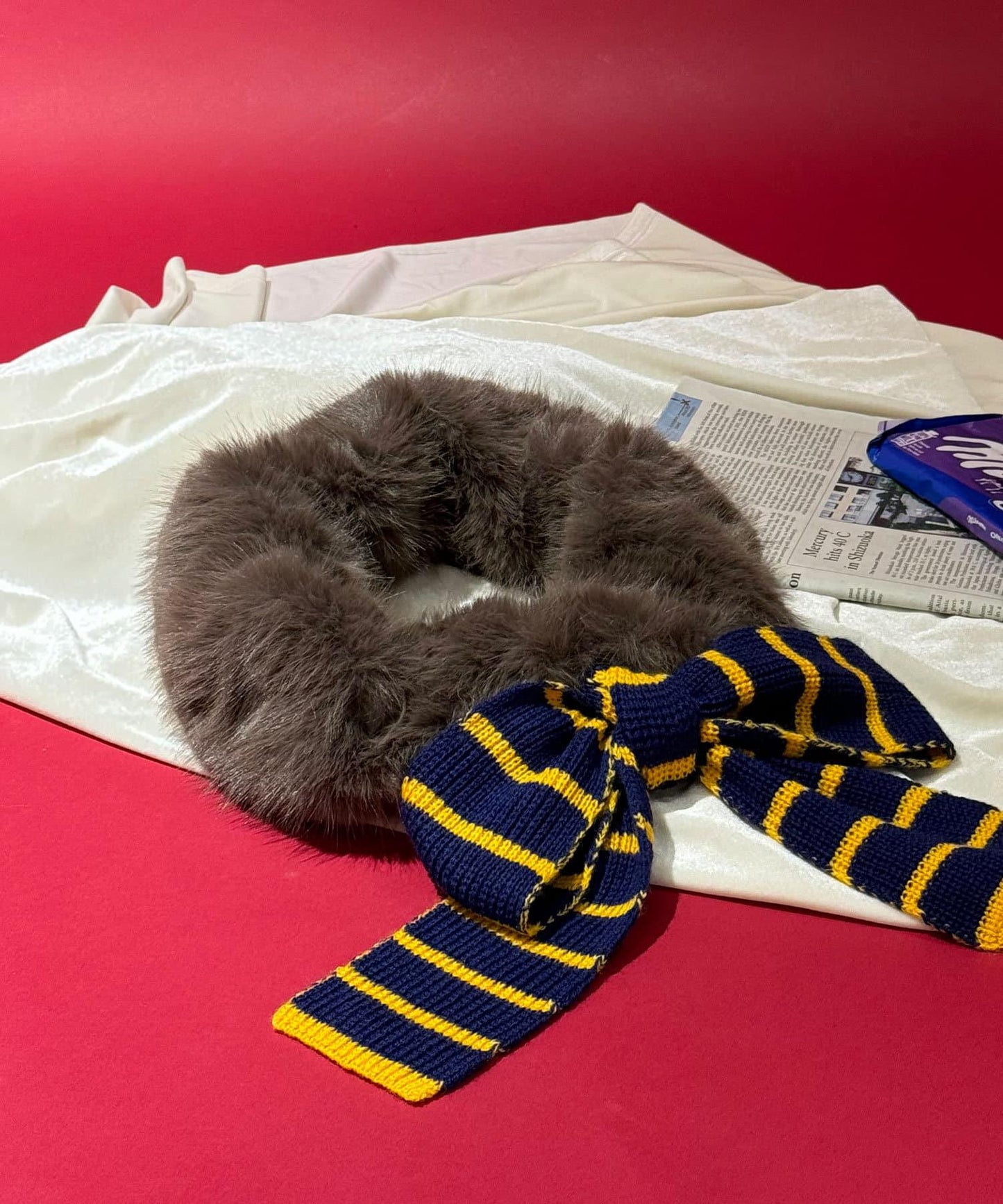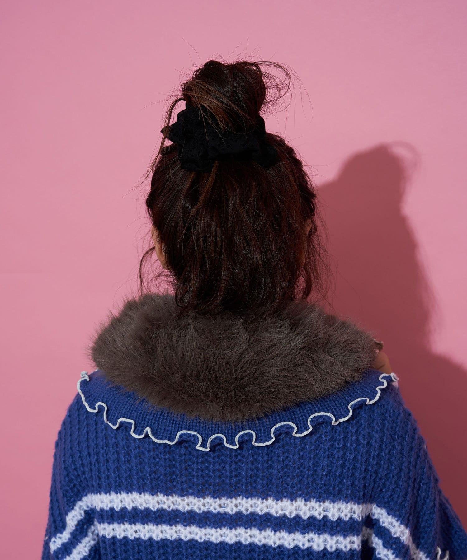 這條圍巾可以讓您通過擠壓針織部分來享受皮草的輪廓,並根據自己的喜好將皮草聚攏!