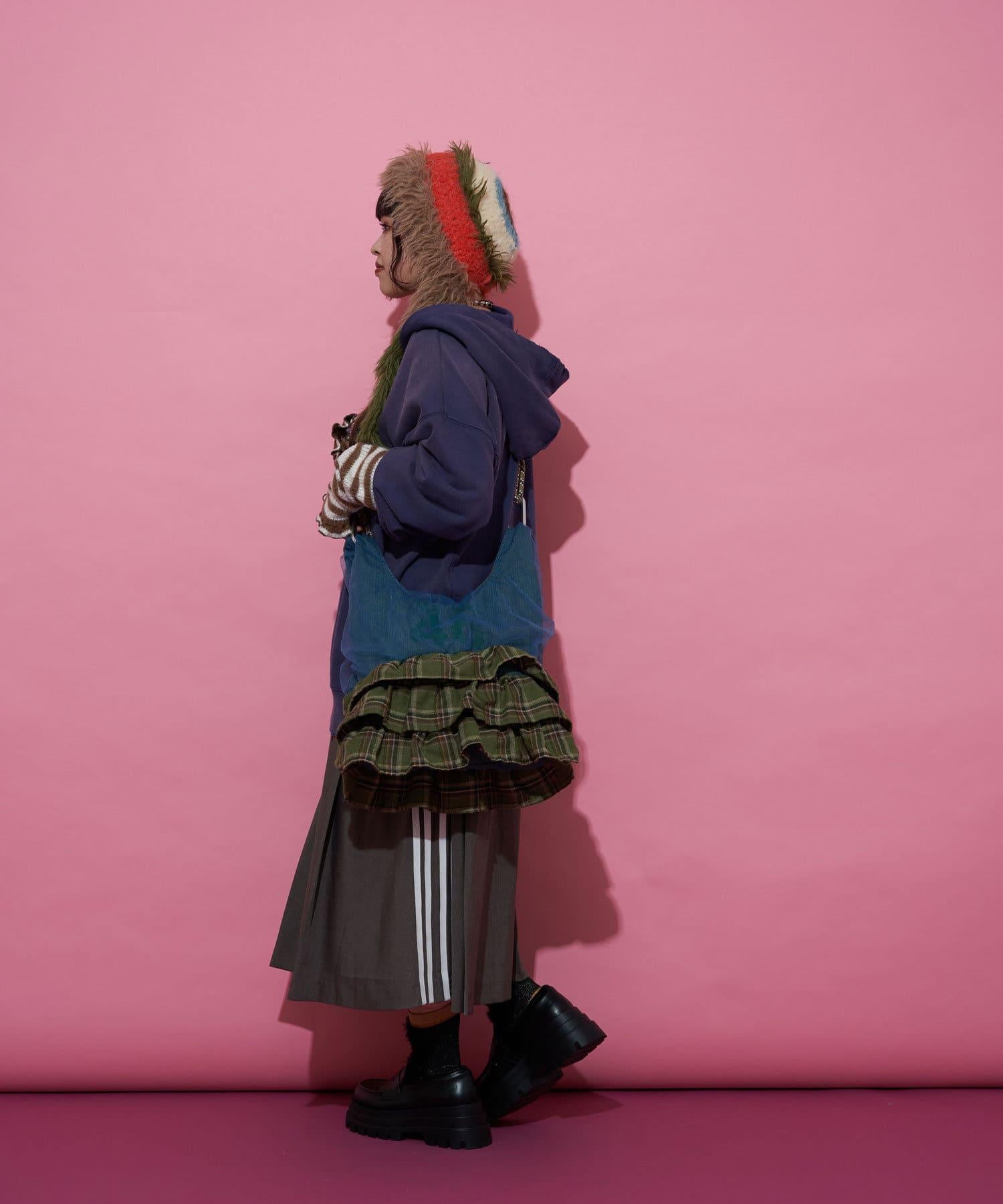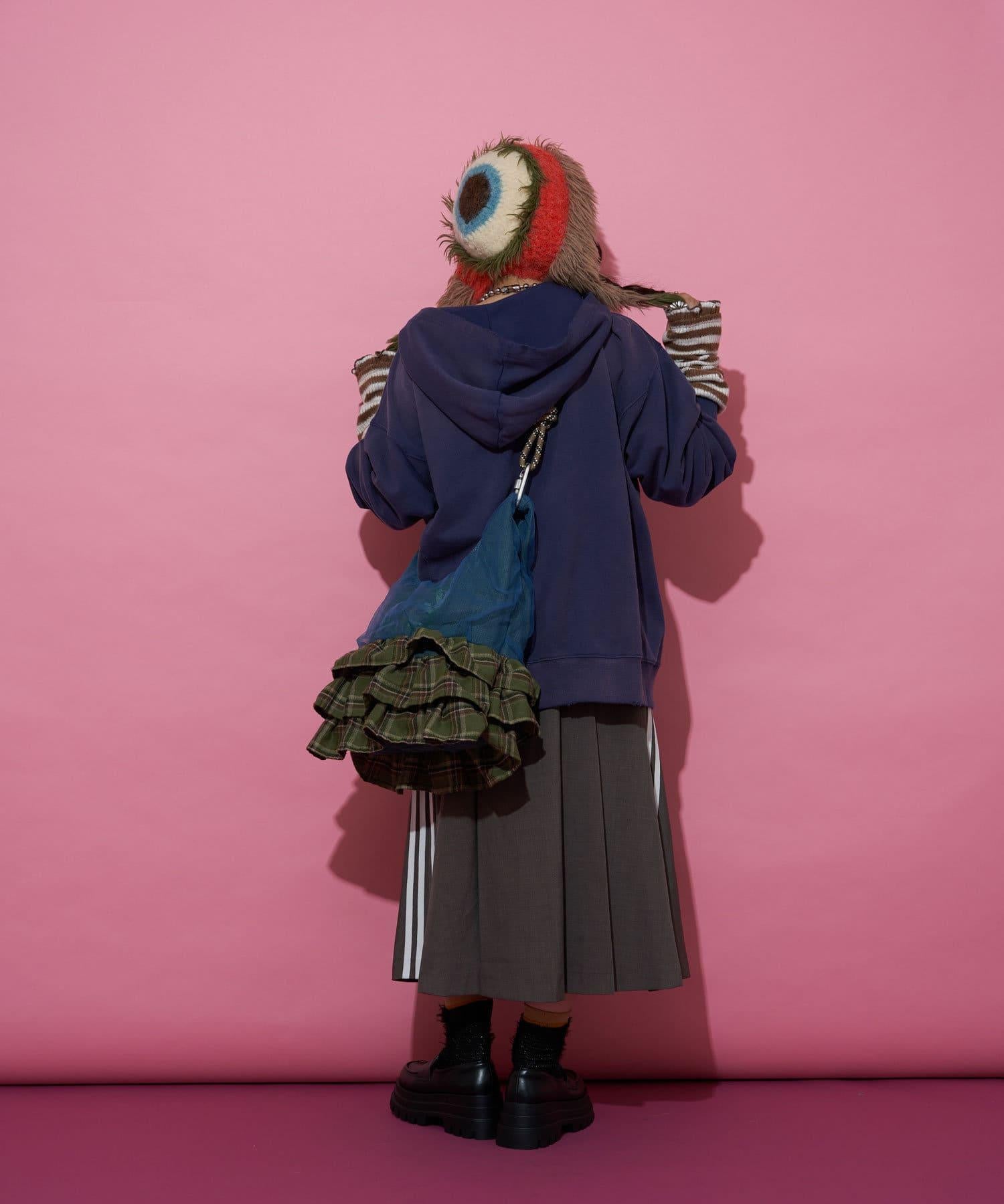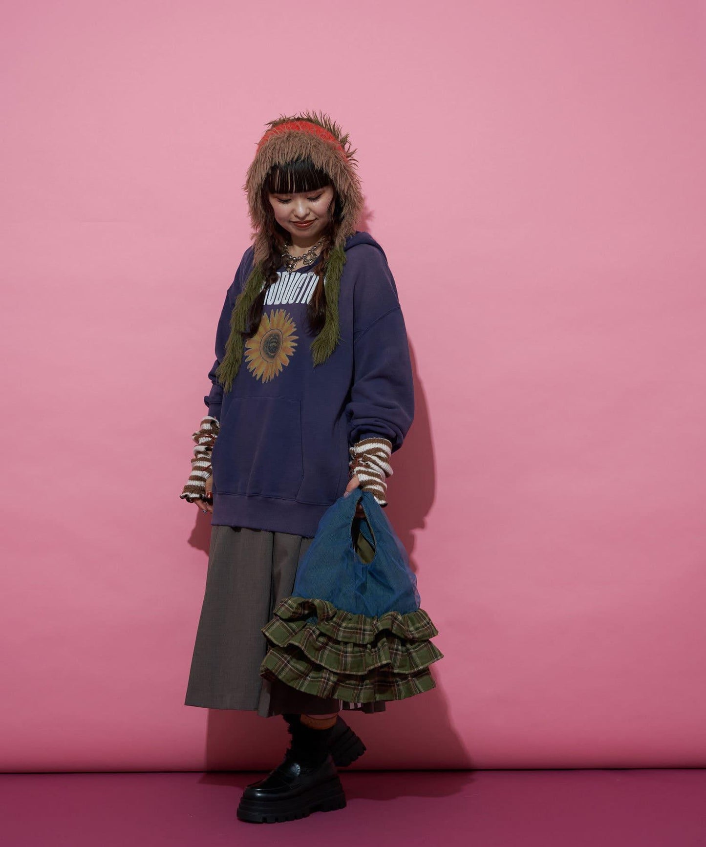 牛仔布料和格紋的對接設計與秋冬季的協調性很好,無論休閒還是少女都能輕鬆使用!
